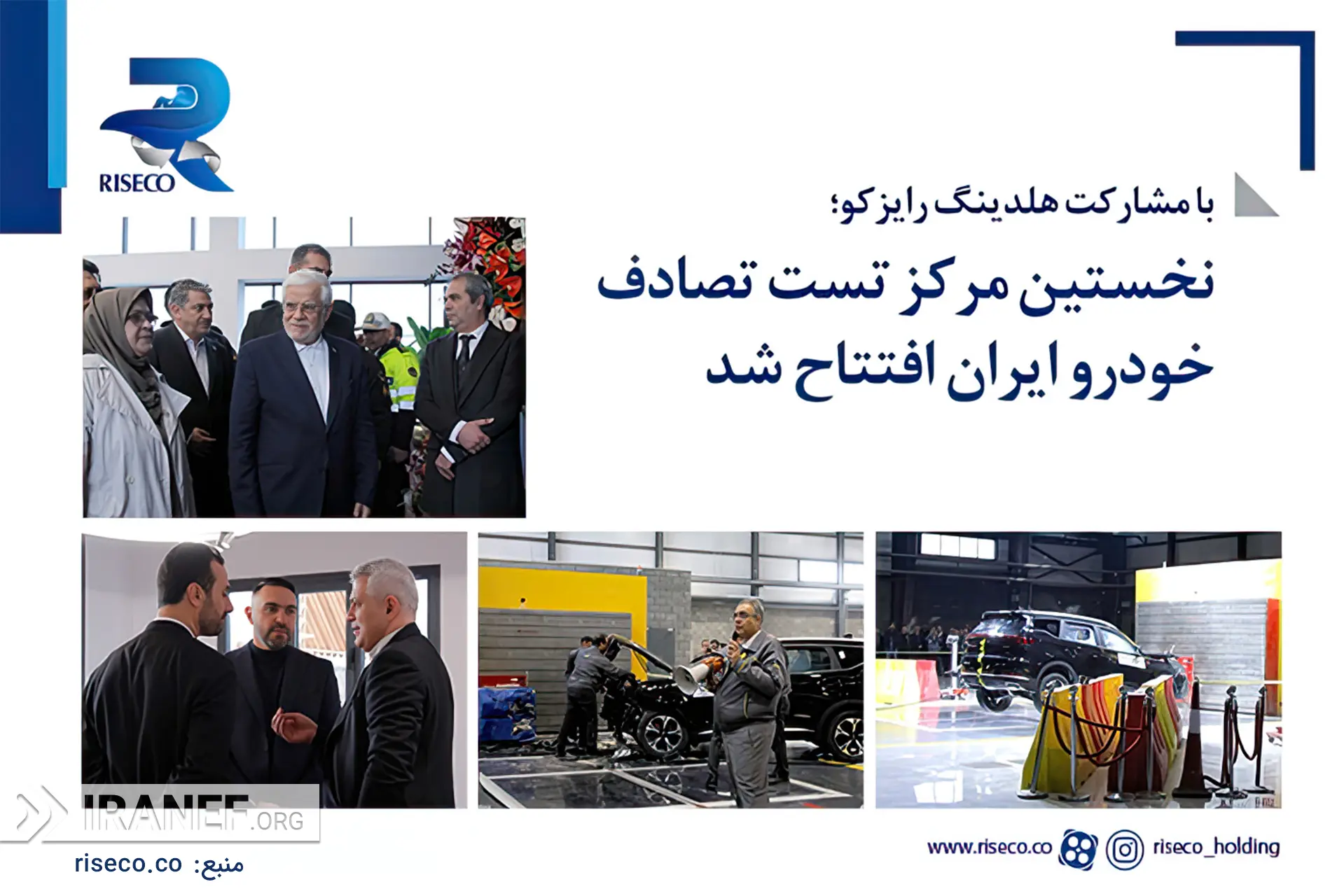 نخستین مرکز تخصصی تست تصادف خودرو در ایران، روز سه‌شنبه ۲۵ آذرماه با مشارکت هلدینگ رایزکو، آذین‌خودرو، گلدستون و ای‌اس‌کیو‌اِی افتتاح شد، مرکزی که راه‌اندازی آن را می‌توان یکی از مهم‌ترین گام‌ها در مسیر ارتقای ایمنی خودروهای داخلی و توسعه زیرساخت‌های ملی صنعت خودرو دانست.