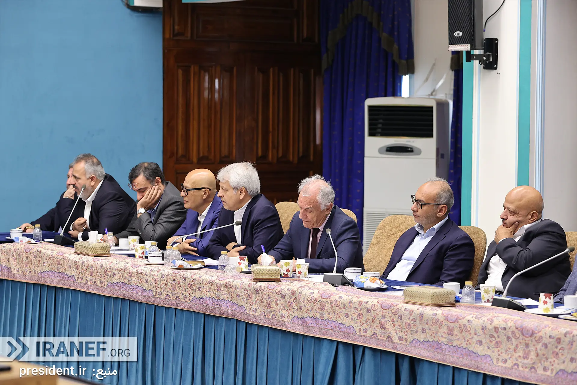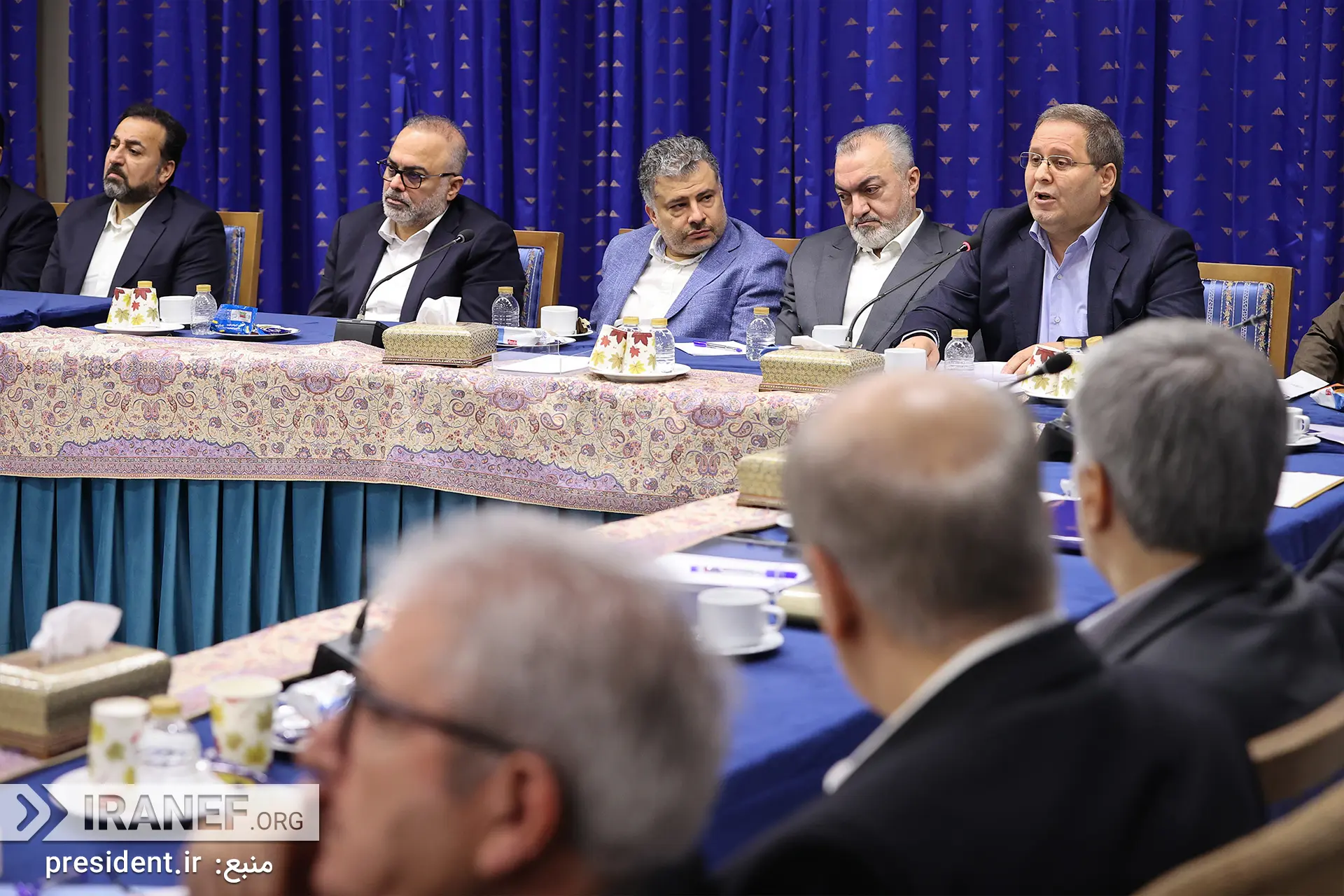 رئیس جمهور در پاسخ به درخواست مطرح شده برای همراهی کارآفرینان و فعالان اقتصادی بزرگ در سفرهای خارجیاش اظهار داشت: این نکته همواره مورد تاکید بنده بوده و اساسا باور داریم که هدف اصلی سفرهای ما تسهیل بستر فعالیت و تولید و تجارت شماست. امروز علاوه بر فضای مساعد در روابط خارجی با کشورهای همسایه و دوست، اتحادیههایی چون شانگهای، بریکس و اوراسیا نیز فرصتهای بسیار خوبی برای همکاری شما با طرفهای خارجی فراهم کرده است.